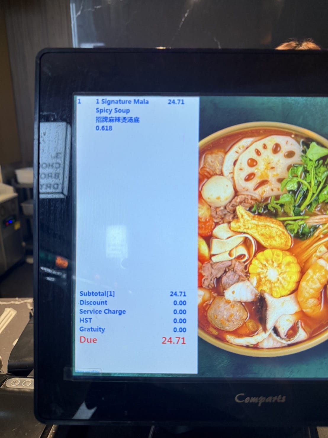 To check out you simply put all the ingredients into the bowl. Then at the counter, all you have to do is weight it and chooses the broth. In this case, I chose the “Spicy Mala Soup”