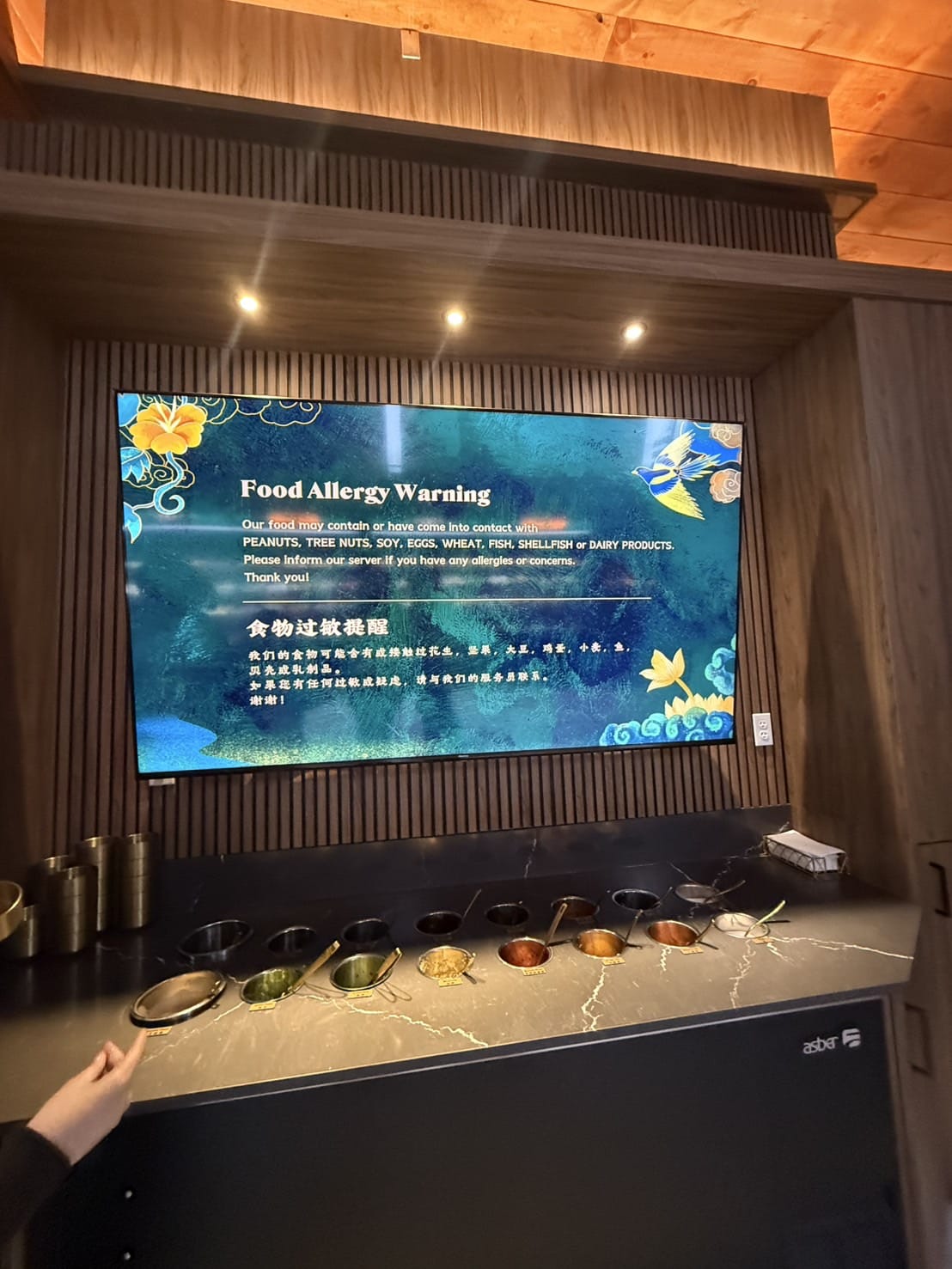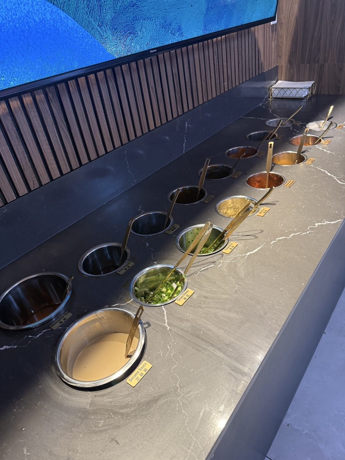 Similar to other Chinese hotpot restaurant, there is also a make it your own sauces area. The REALLY NICE part about this place is that there is a giant screen with the recommended recipe in ENGLISH. I actually have been wondering on how to create the sauce FOREVER so this is fantastic. I didn’t think something as simple as a guide would change my outlook on a restaurant this much, but this was a major point for a non Chinese speaking person like me!