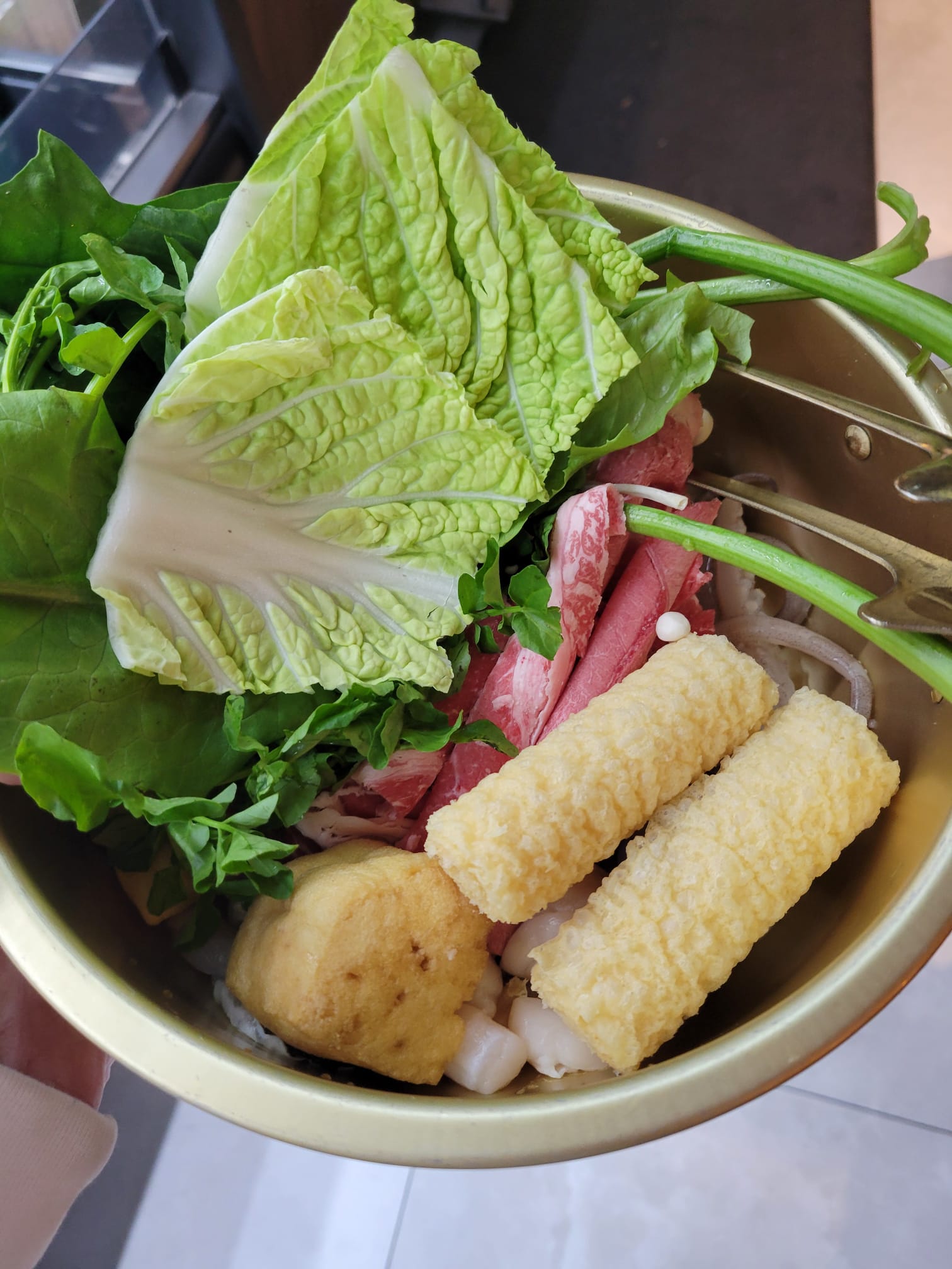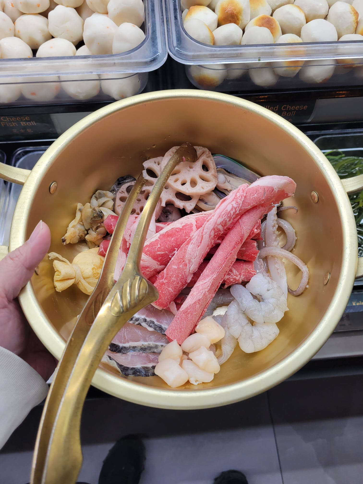 The first picture shows mainly the seafood and the meat that I chose then I added some more vegetables and tofu on top!