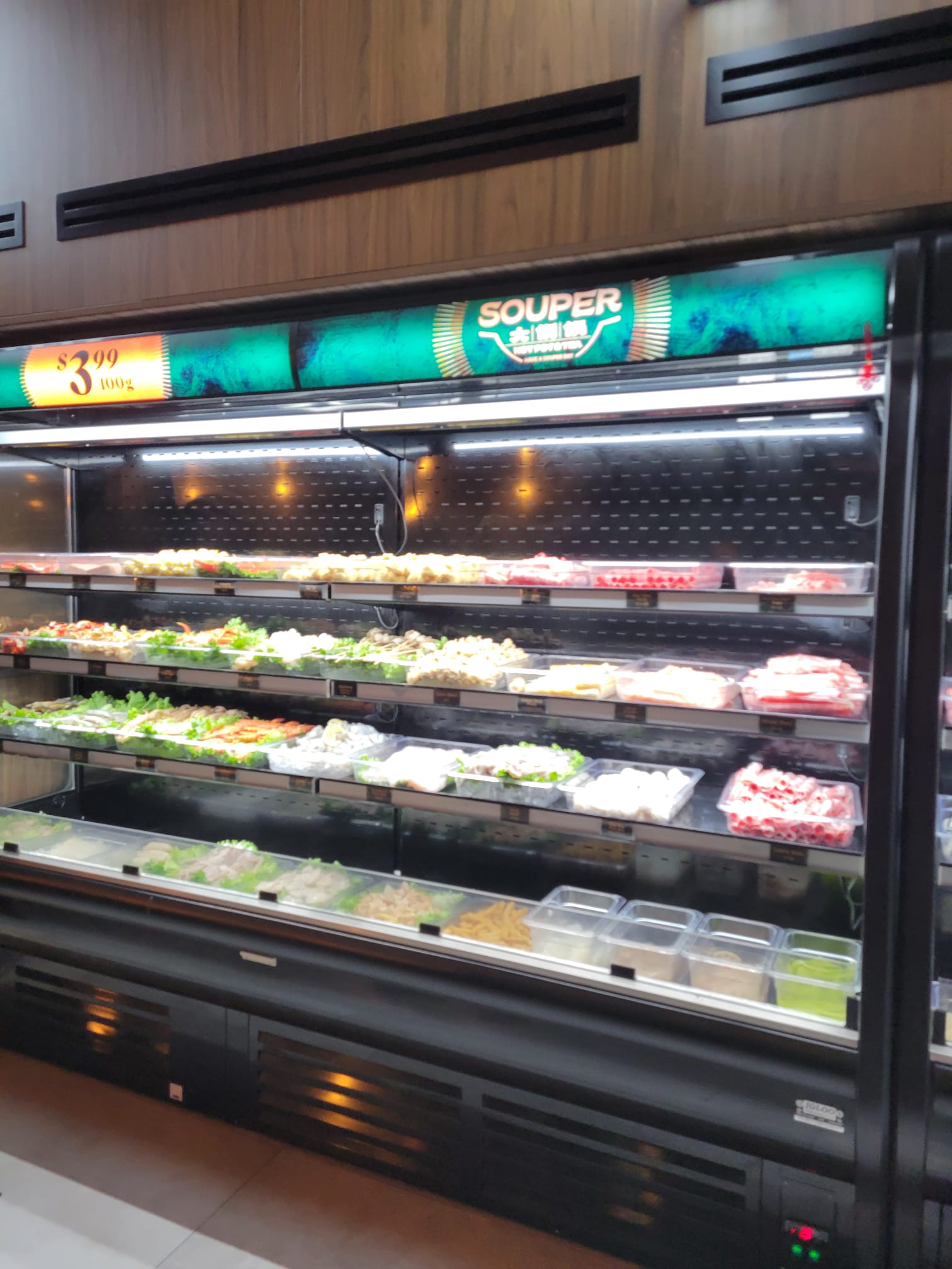 Value: Overall great value! Great selections of meat/seafood and vegetables. The price is a flat rate of $3.99/100g. It is not necessary cheap as a meal but its in line with a similar offering downtown Toronto. The quality of seafood really stands out for its value. The nice thing about this is that since it is per weight you can put as much or little as you would like, for those who do not eat as much there is no minimum weight either!